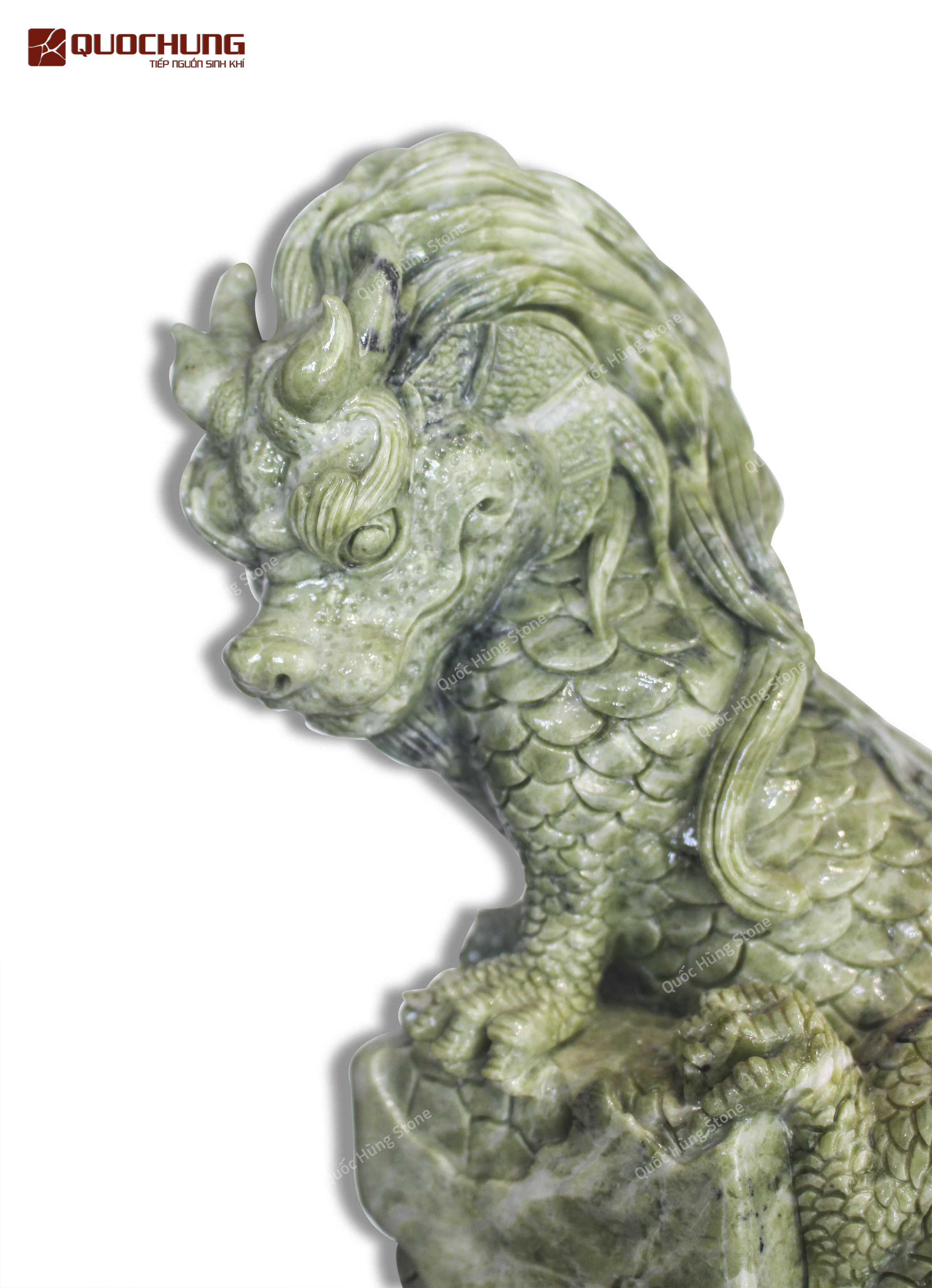 Đá Serpentine có màu xanh lá cây đặc trưng, tạo nên vẻ đẹp tự nhiên và sang trọng cho Ấn Kỳ Lân. Màu sắc này không chỉ dễ dàng hòa hợp với các phong cách trang trí nội thất mà còn được xem là màu sắc của sự sống, sinh khí và sức mạnh.