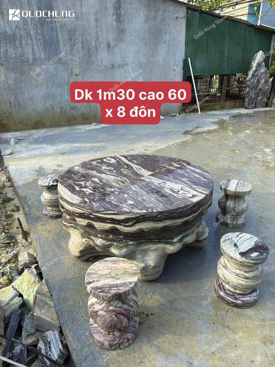 Nếu bạn đang tìm kiếm bàn ghế đá tự nhiên cho không gian sân vườn của mình, đừng quên ghé thăm Quốc Hùng Stone – đơn vị chuyên cung cấp các sản phẩm đá tự nhiên cao cấp.