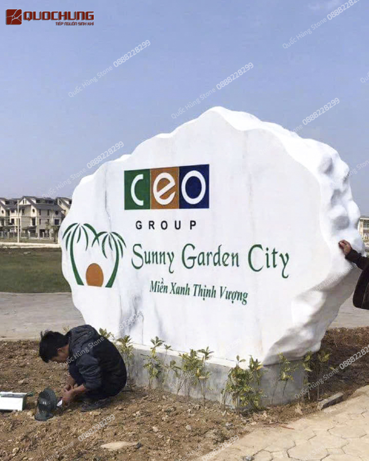 Bảng hiệu sau khi gia công sẽ được lắp đặt chắc chắn tại vị trí đã định, đảm bảo tính an toàn và thẩm mỹ.Thi công lắp đặt Bảng Hiệu Đá do Quốc Hùng Stone thi công