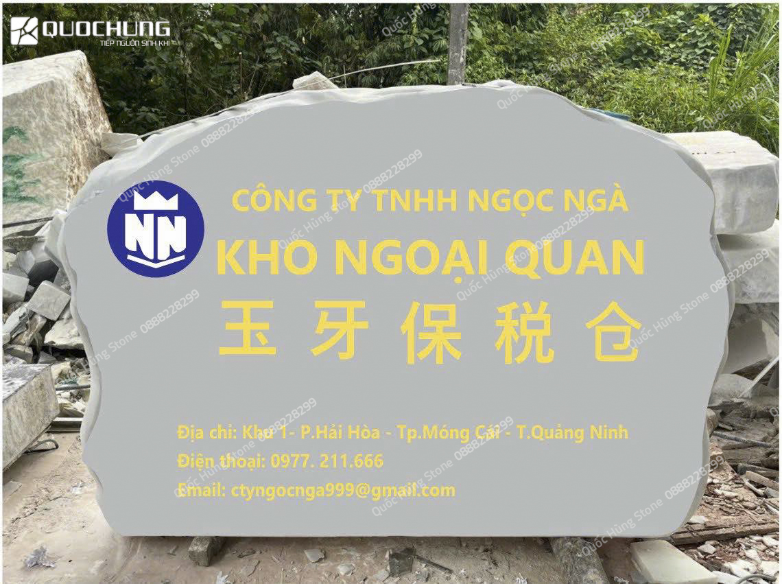 Đá trắng thô Yên Bái làm biển hiệu đá