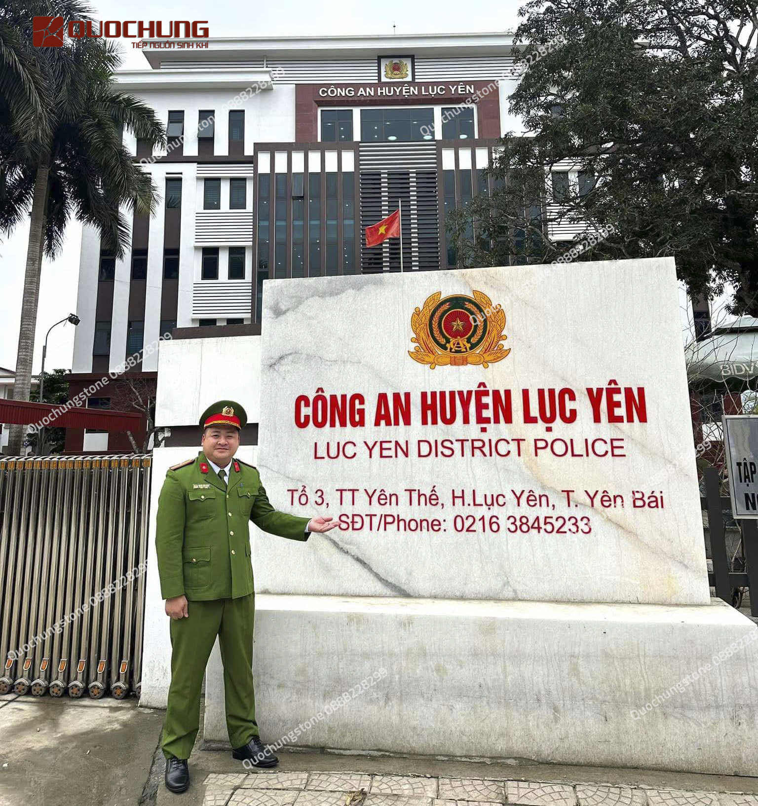 Sự kết hợp giữa đá tự nhiên và hệ thống đèn LED giúp biển hiệu dễ nhận diện trong điều kiện thiếu sáng. Đây là lựa chọn phổ biến cho các cơ quan có hoạt động ngoài giờ hoặc cần thu hút sự chú ý liên tục.