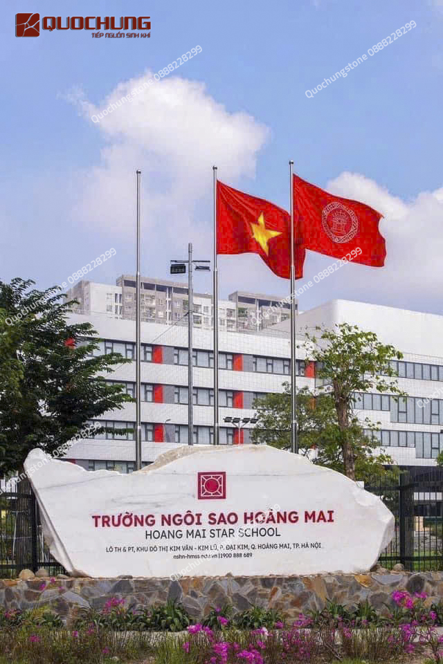 Biển hiệu đá trường Ngôi Sao Hoàng Mai do Quốc Hùng Stone thi công