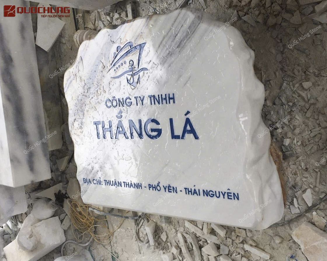 - Chất sứ cao cấp: Đá trắng Yên Bái có bề mặt sáng bóng, màu trắng tinh khiết, mang lại vẻ đẹp thanh lịch và sang trọng cho biển hiệu.