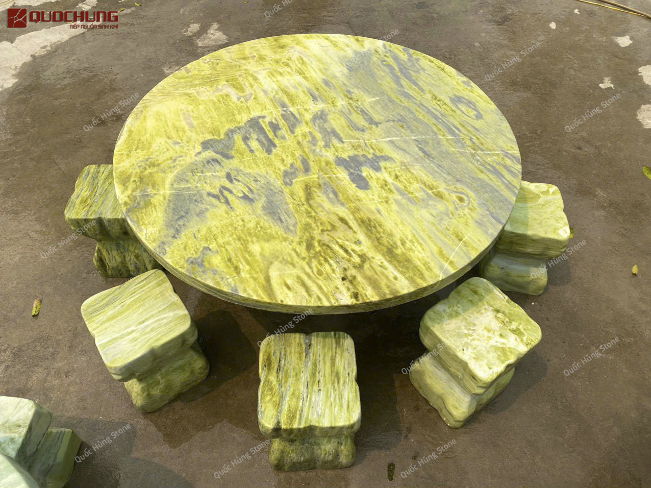 Bộ bàn ghế đá tự nhiên được chế tác từ ngọc Serpentine tại Yên Bái.