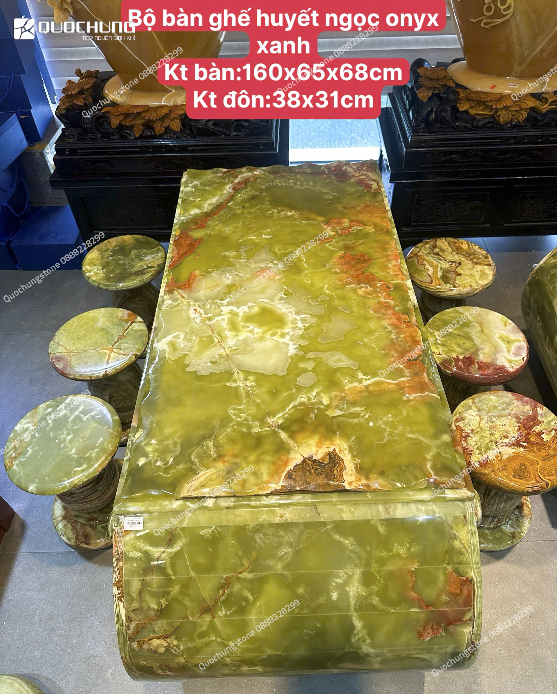 - Bộ Bàn Ghế Huyết Ngọc Onyx Xanh – Tác Phẩm Phong Thủy Sang Trọng Thu Hút Tài Lộc