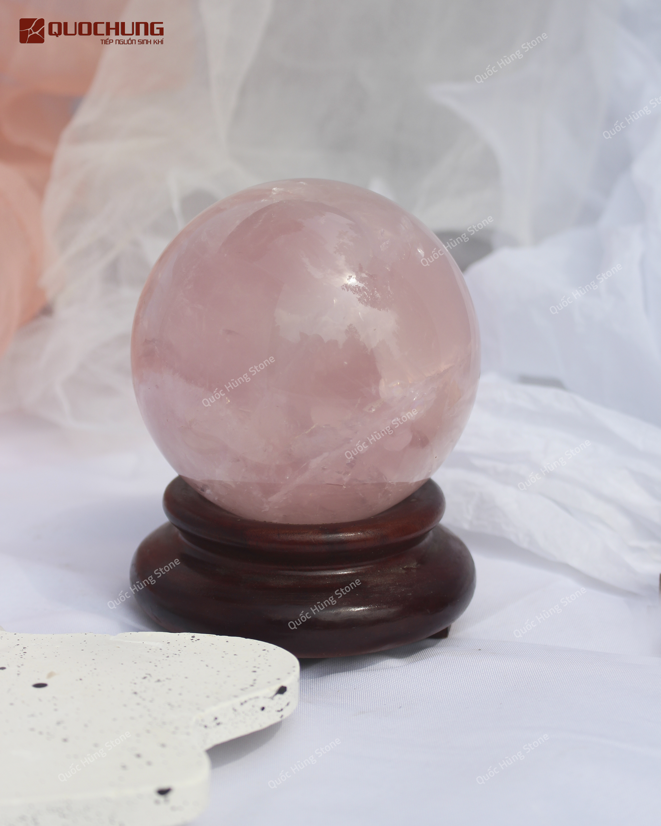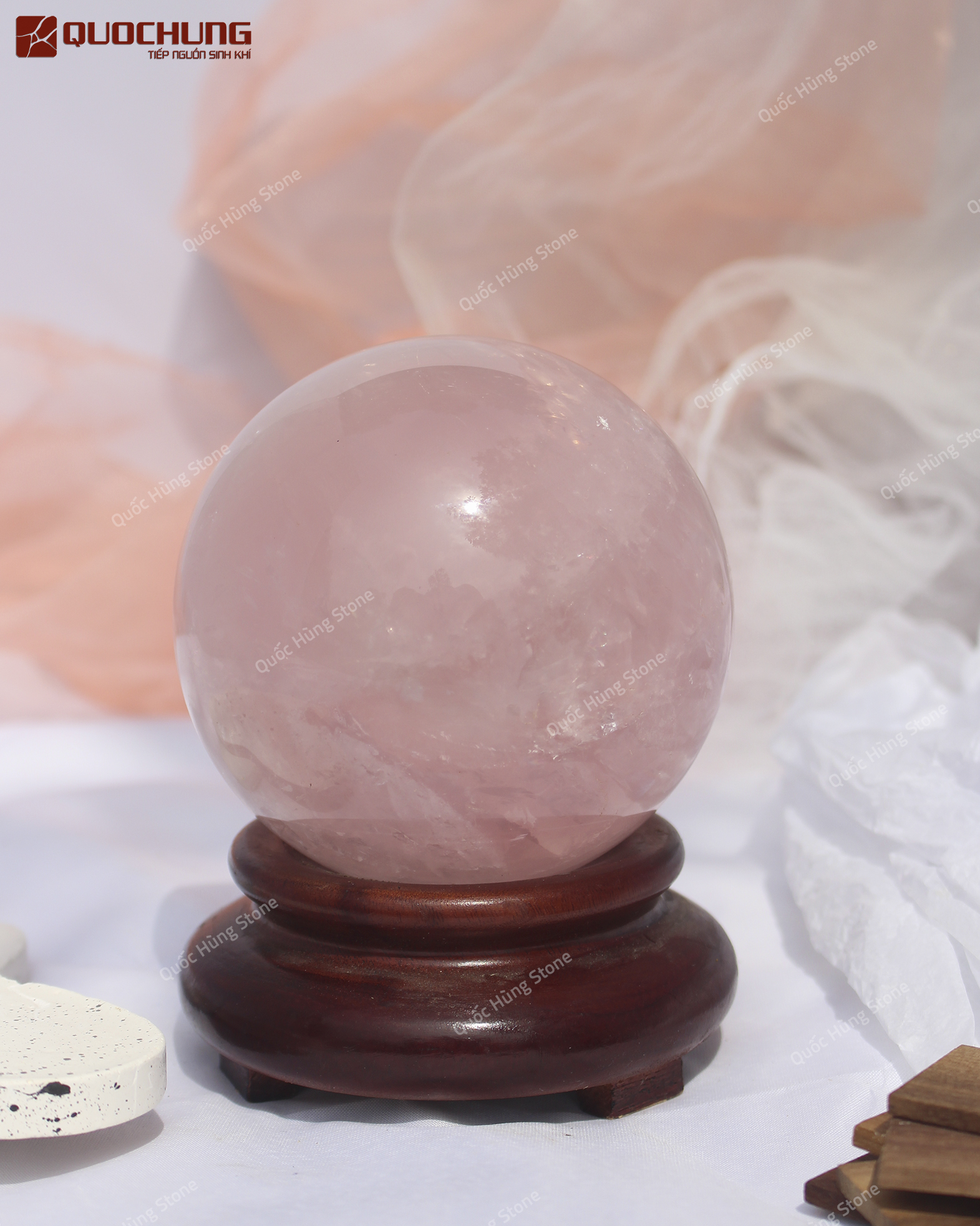 Quả Cầu Đá Thạch Anh Hồng mang đến năng lượng yêu thương và sự bình an, giúp cân bằng cảm xúc, thu hút tình duyên và hạnh phúc cho gia chủ.