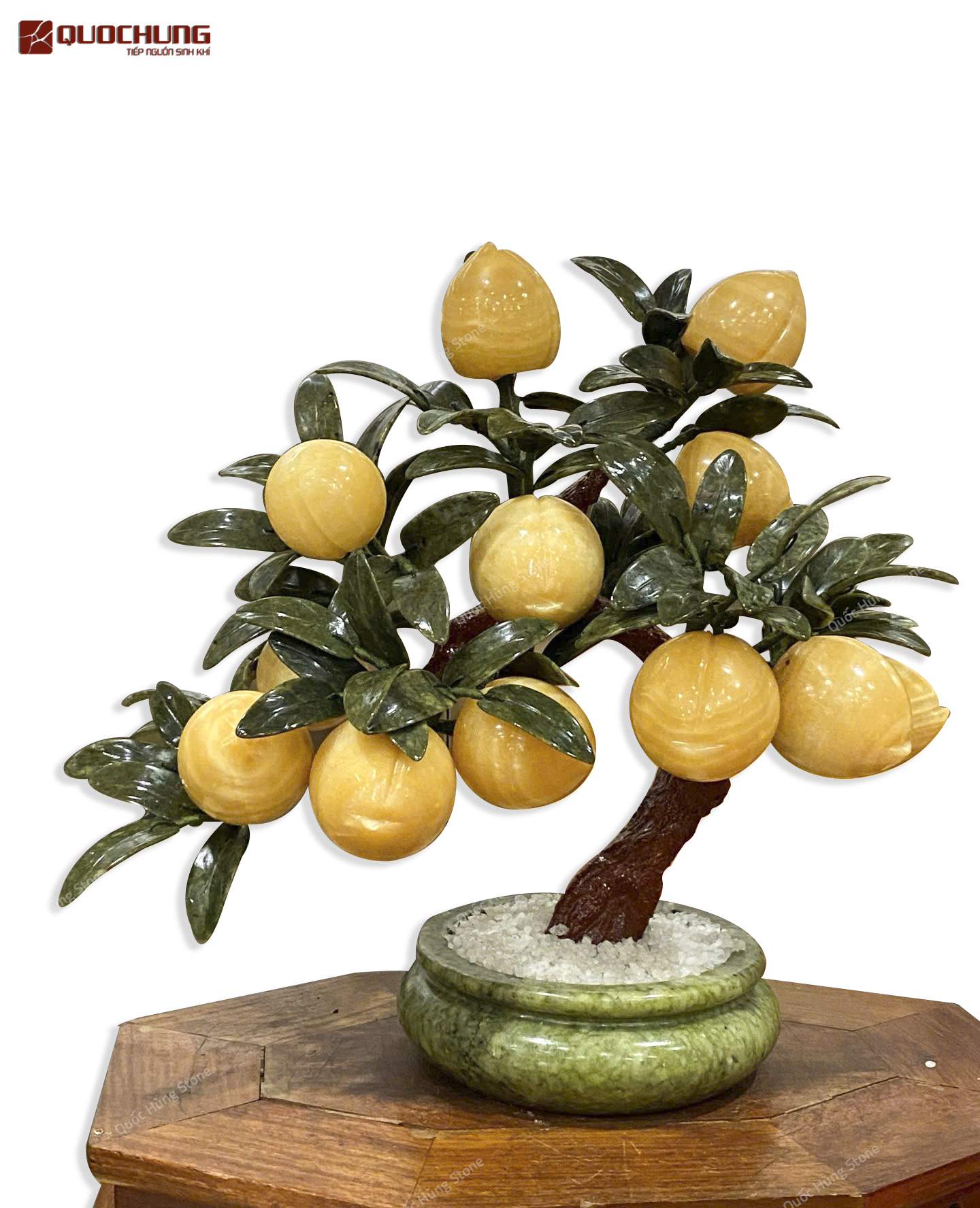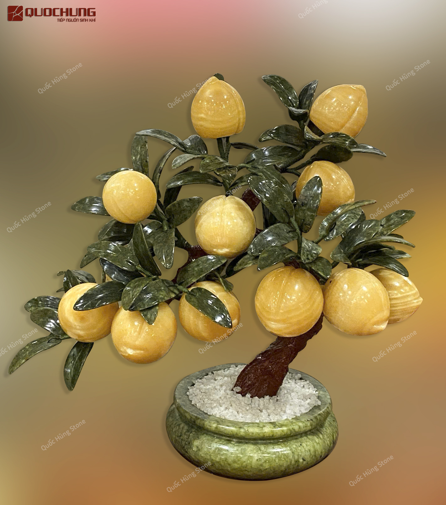 Cây Đào Ngọc Hoàng Long là một tác phẩm phong thủy tinh xảo được chế tác từ đá Ngọc Hoàng Long tự nhiên. Với màu vàng rực rỡ, cây đào không chỉ mang lại vẻ đẹp sang trọng cho không gian sống mà còn tượng trưng cho tài lộc, sức khỏe và hạnh phúc. Được thiết kế tỉ mỉ với những quả đào căng mọng, sản phẩm này không chỉ là món quà ý nghĩa mà còn là biểu tượng của sự thịnh vượng và trường thọ, giúp gia chủ thu hút năng lượng tích cực và xua đuổi tà khí.
