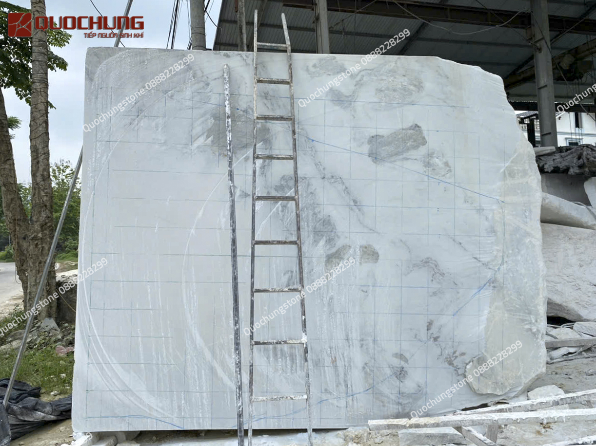 Chất liệu: Đá trắng Yên Bái tự nhiên – loại đá có độ cứng cao, sắc sáng, vân đá mây nhẹ thanh lịch