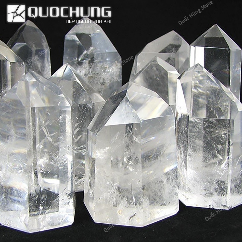 Mỗi viên thạch anh trắng tinh thể đều có hình dạng độc đáo, được hình thành tự nhiên qua hàng triệu năm. Các cạnh của tinh thể sắc nét và đều đặn, mang lại giá trị thẩm mỹ cao và tác dụng phong thủy mạnh mẽ.