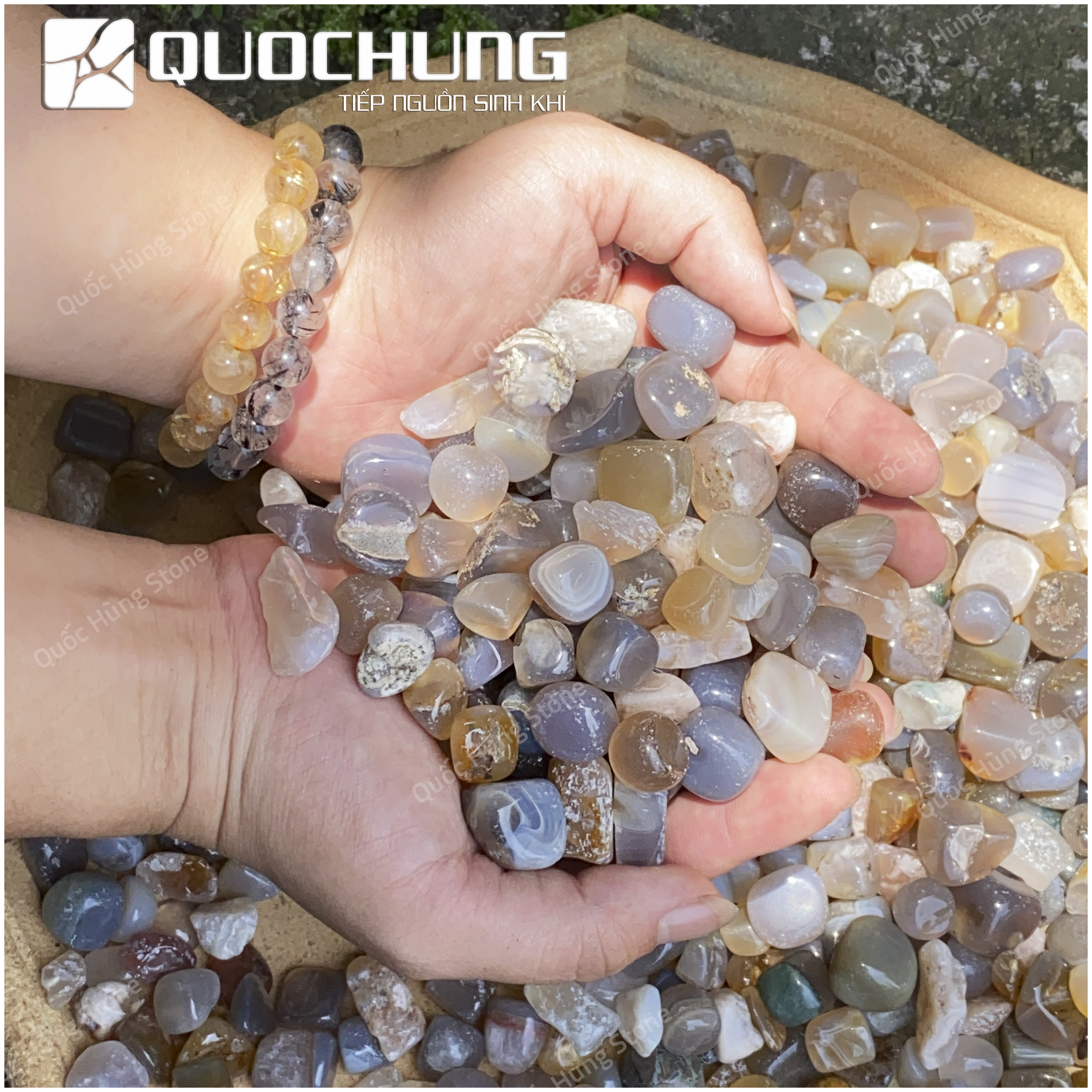Nếu bạn quan tâm và muốn tìm hiểu thêm về sản phẩm đá vụn mã não Khoai Môn mài bóng tại Quốc Hùng Stone, hãy liên hệ ngay để nhận được tư vấn và hỗ trợ tốt nhất. Với cam kết về chất lượng và dịch vụ, Quốc Hùng Stone chắc chắn sẽ mang đến cho bạn những sản phẩm và trải nghiệm tuyệt vời.