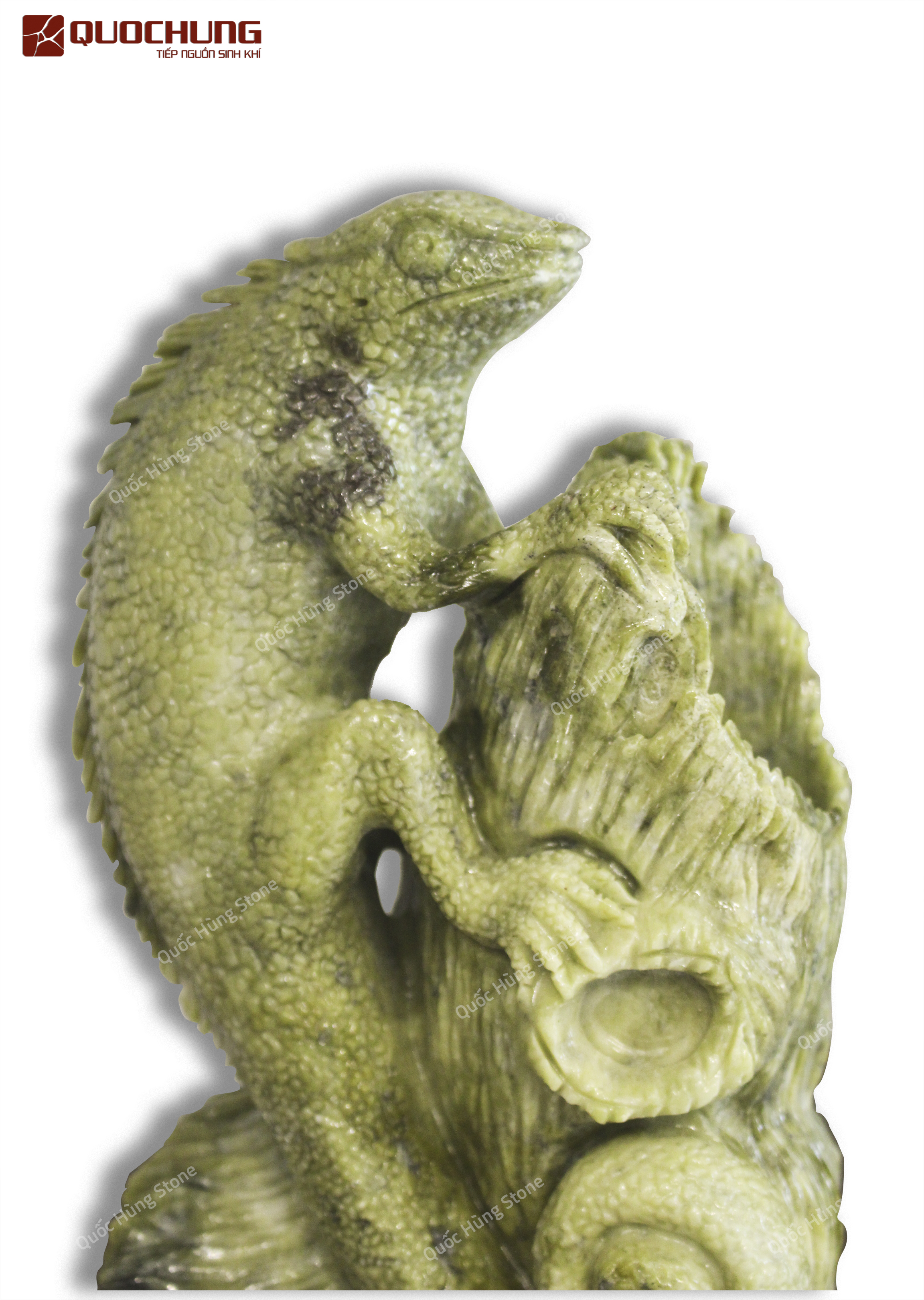 Linh vật tắc kè hoa giúp gia chủ thu hút năng lượng tích cực, từ đó mang lại may mắn và tài lộc. Đặc biệt, đá serpentine có khả năng cân bằng năng lượng trong không gian, tạo điều kiện cho những điều tốt đẹp đến với gia đình.