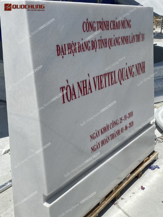 Các mẫu đá granite và cẩm thạch với thiết kế chữ nổi thường được lựa chọn cho vị trí này để tạo sự uy nghi và chuyên nghiệp.