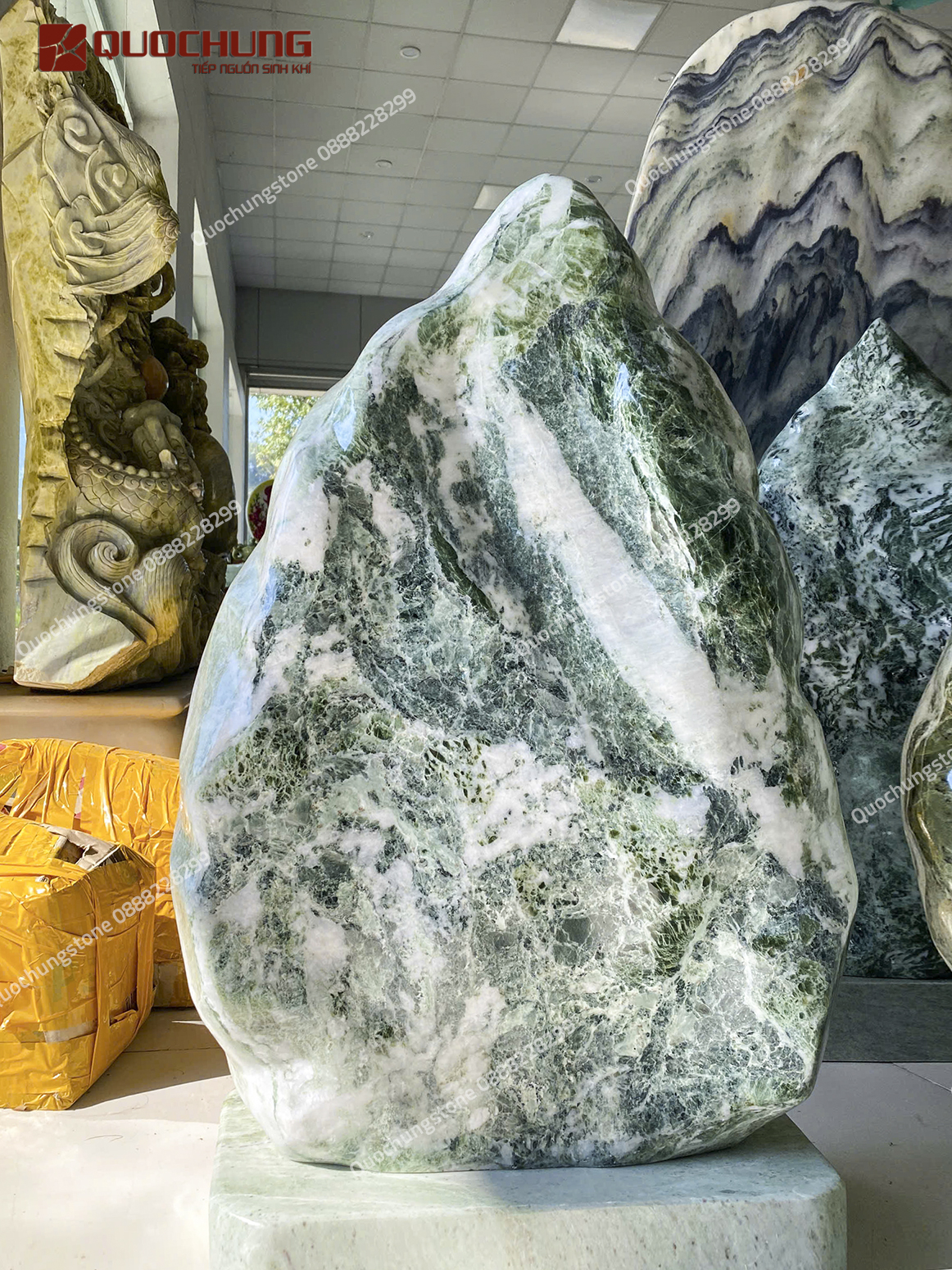 - Thu hút tài lộc: Đặc biệt với những người làm kinh doanh, đặt một khối núi đá Serpentine xanh trong không gian làm việc giúp kích hoạt tài vận, mang lại may mắn và sự phát đạt.
