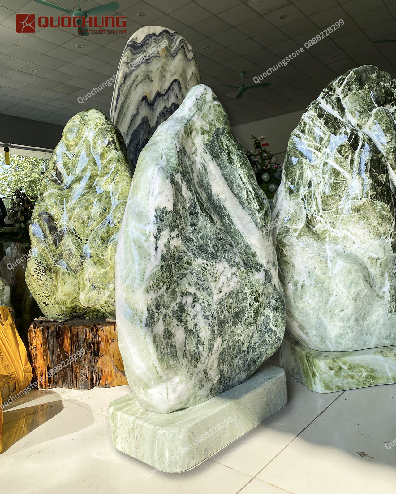 - Với 4 xưởng sản xuất quy mô lớn, Quốc Hùng Stone có thể cung cấp nhiều mẫu mã núi đá Serpentine xanh từ kích thước nhỏ đến lớn.