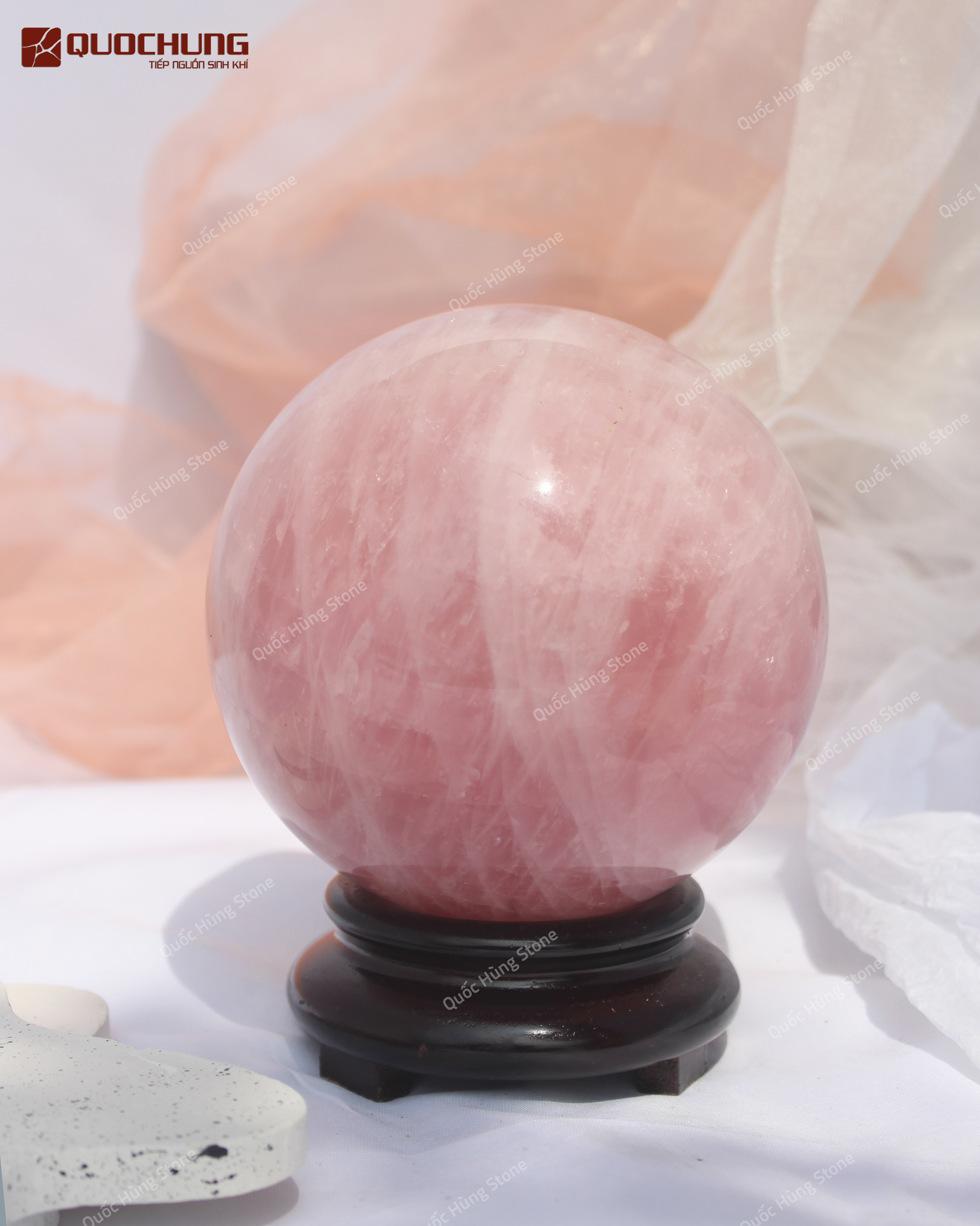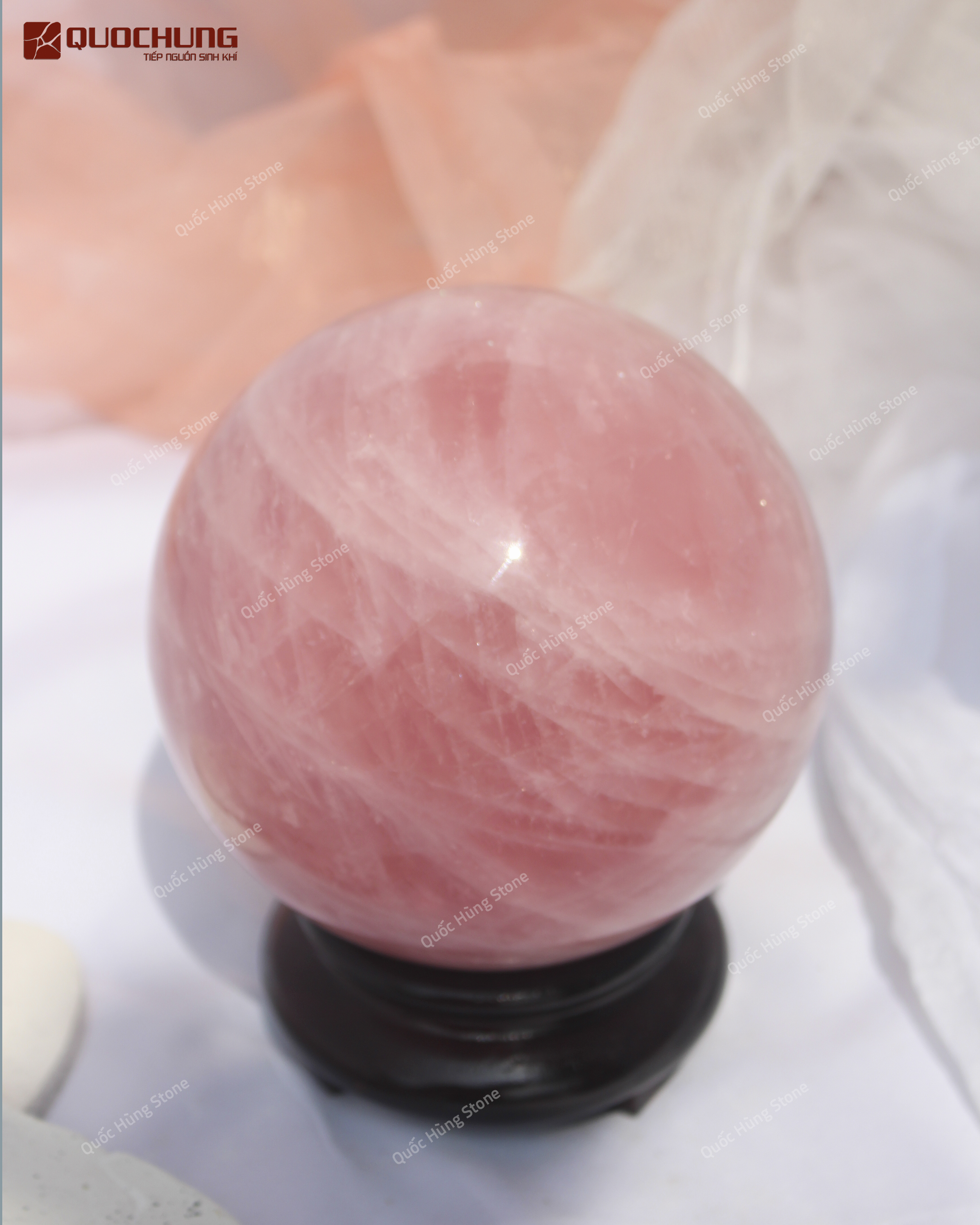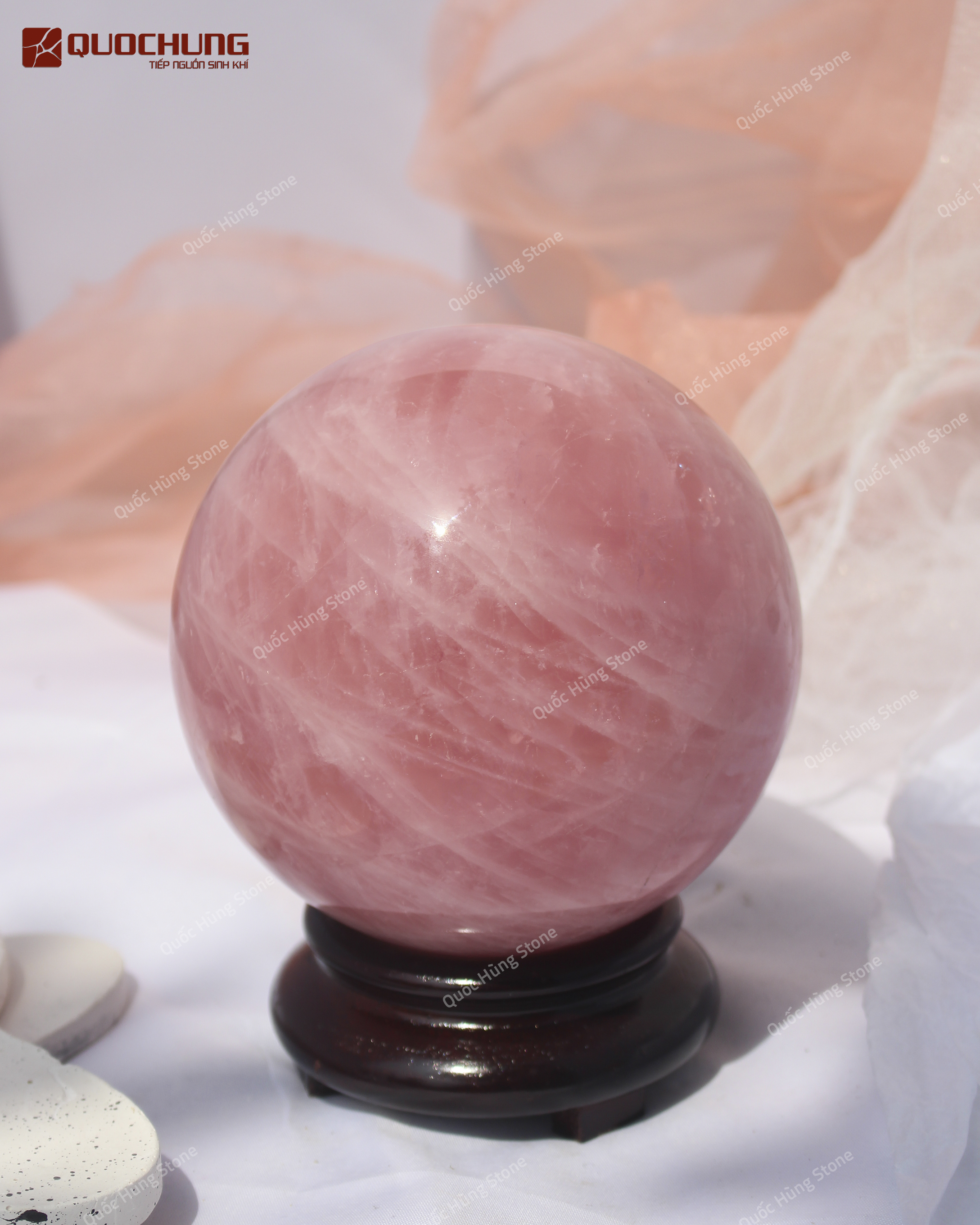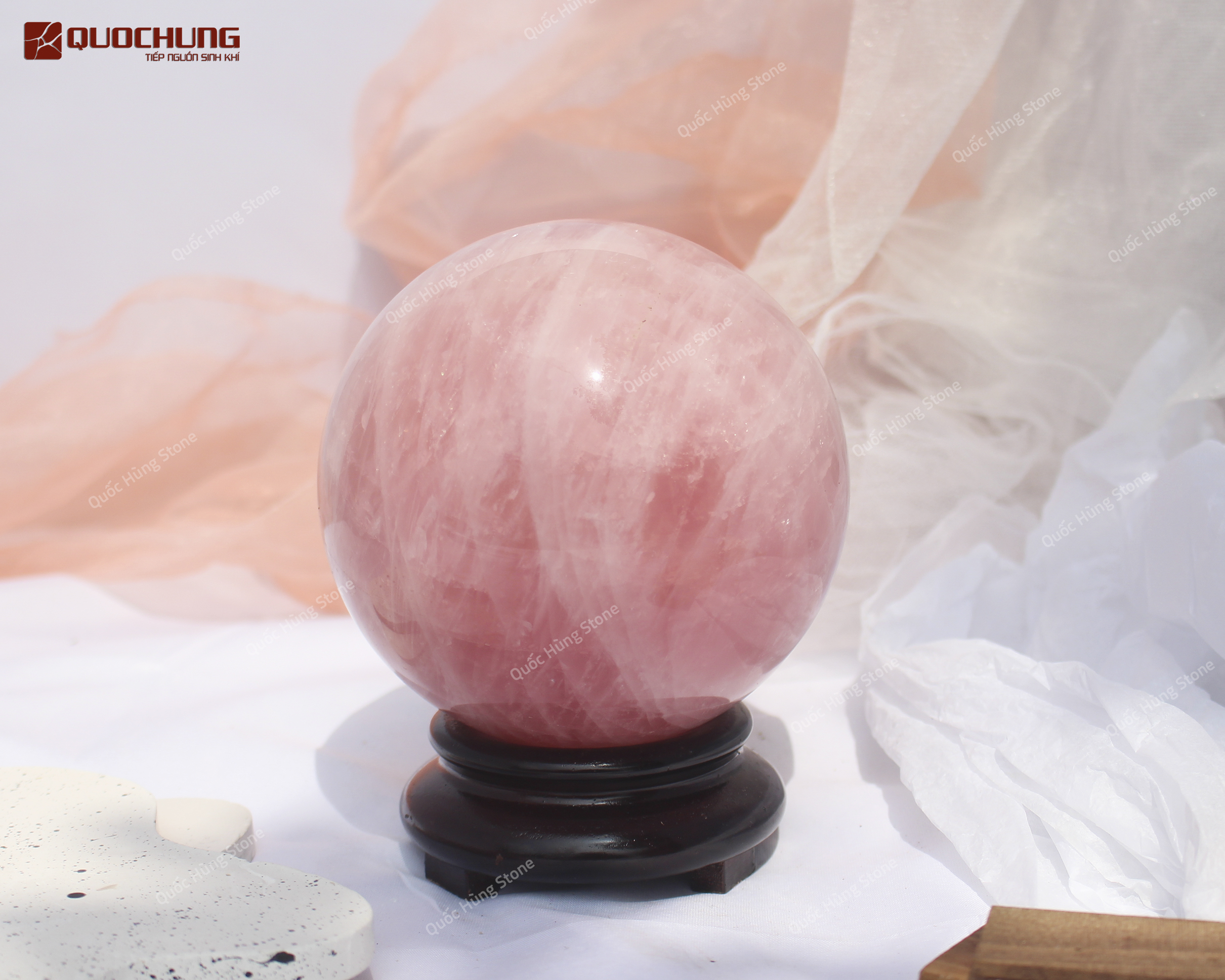 Tăng Cường Tình Yêu: Trong phong thủy, quả cầu đá thạch anh hồng được coi là biểu tượng của tình yêu và hạnh phúc, giúp thu hút tình cảm tốt đẹp và củng cố mối quan hệ.