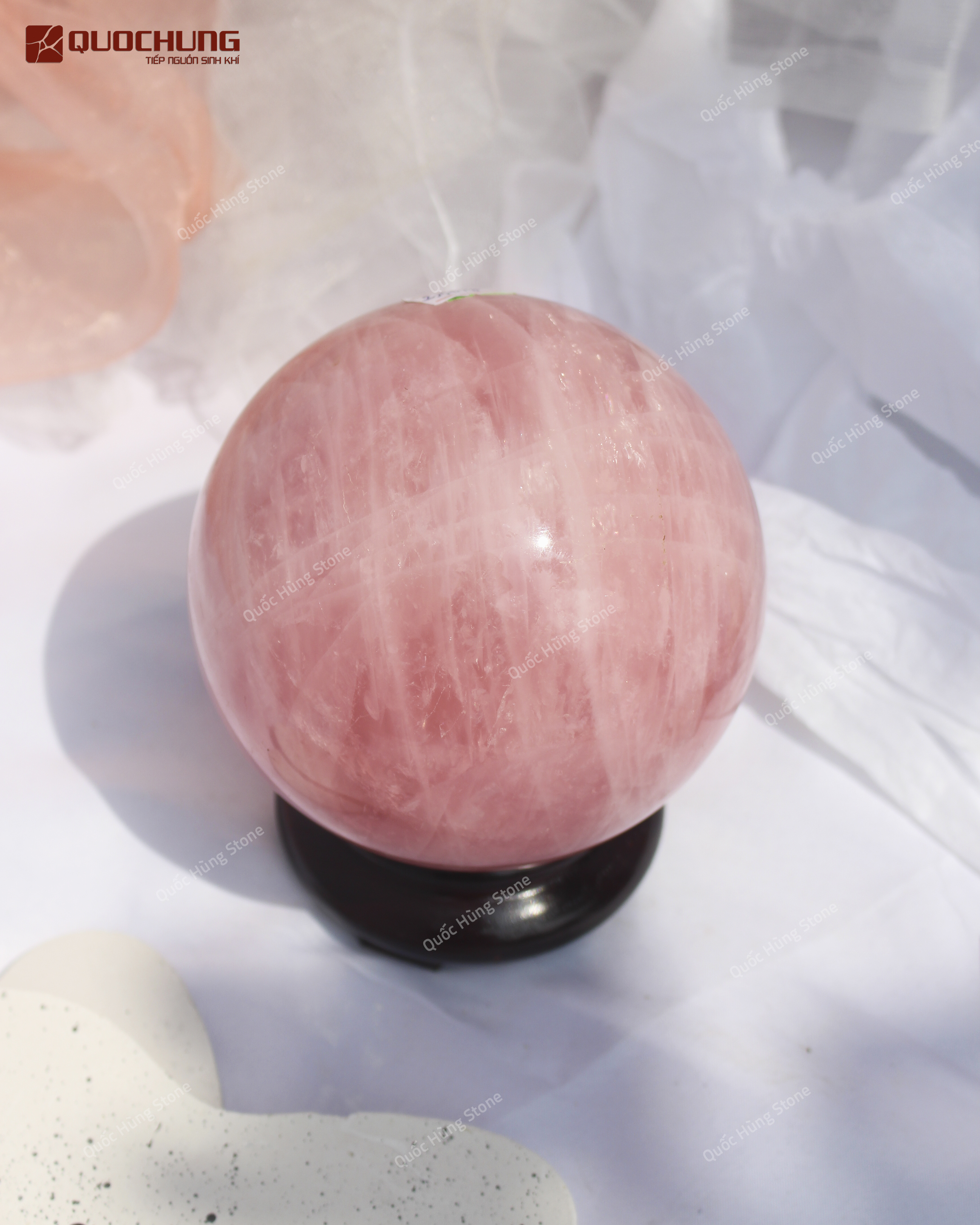 Quả cầu đá thạch anh hồng nổi bật với màu sắc hồng nhẹ nhàng, từ hồng nhạt đến hồng đậm. Được chế tác từ thạch anh hồng tinh khiết, quả cầu này có độ trong suốt cao và ánh sáng mờ ảo, tạo nên sự quyến rũ đặc biệt. Với độ cứng 7 trên thang Mohs, quả cầu đá thạch anh hồng bền bỉ và ít bị trầy xước. Đây là lựa chọn phổ biến trong phong thủy để thu hút tình yêu và tạo sự hài hòa.