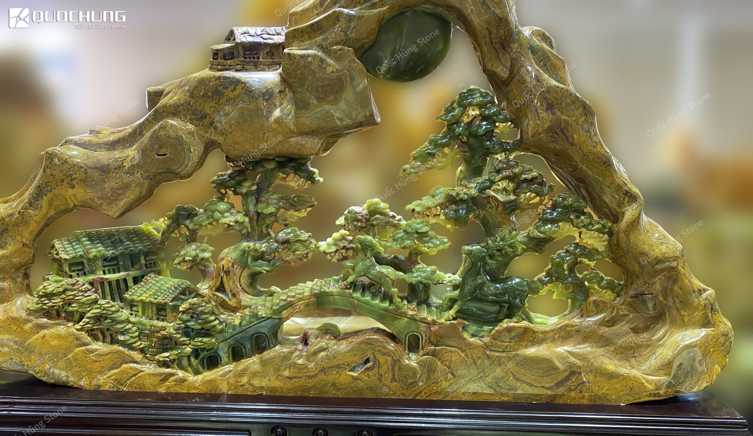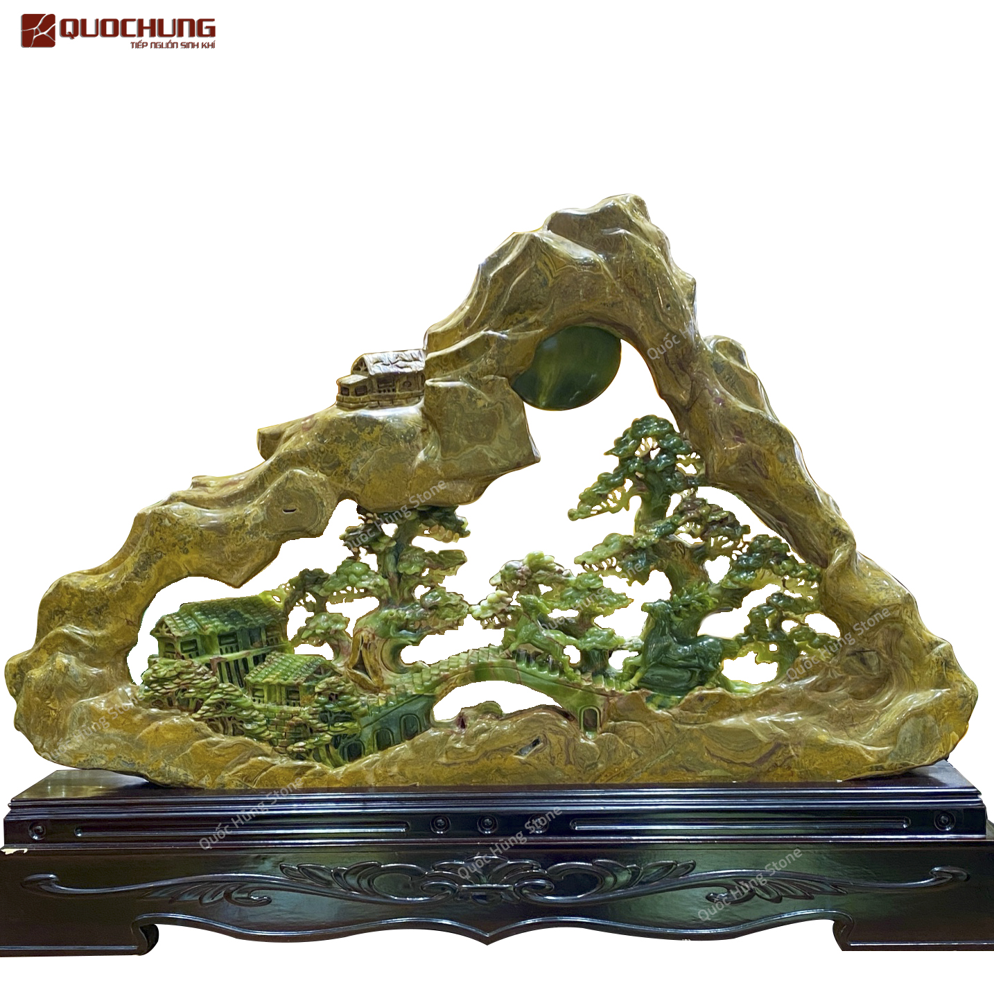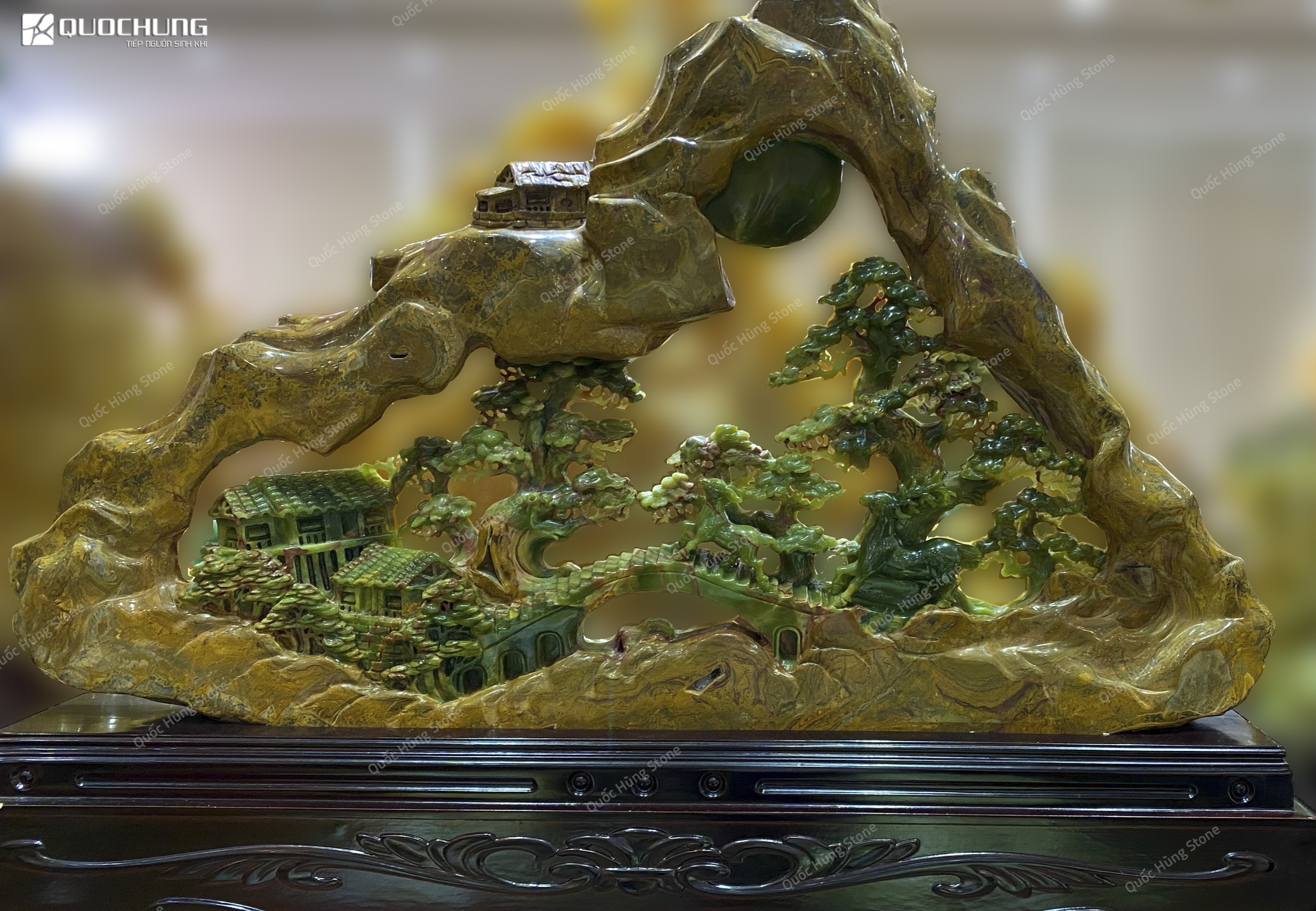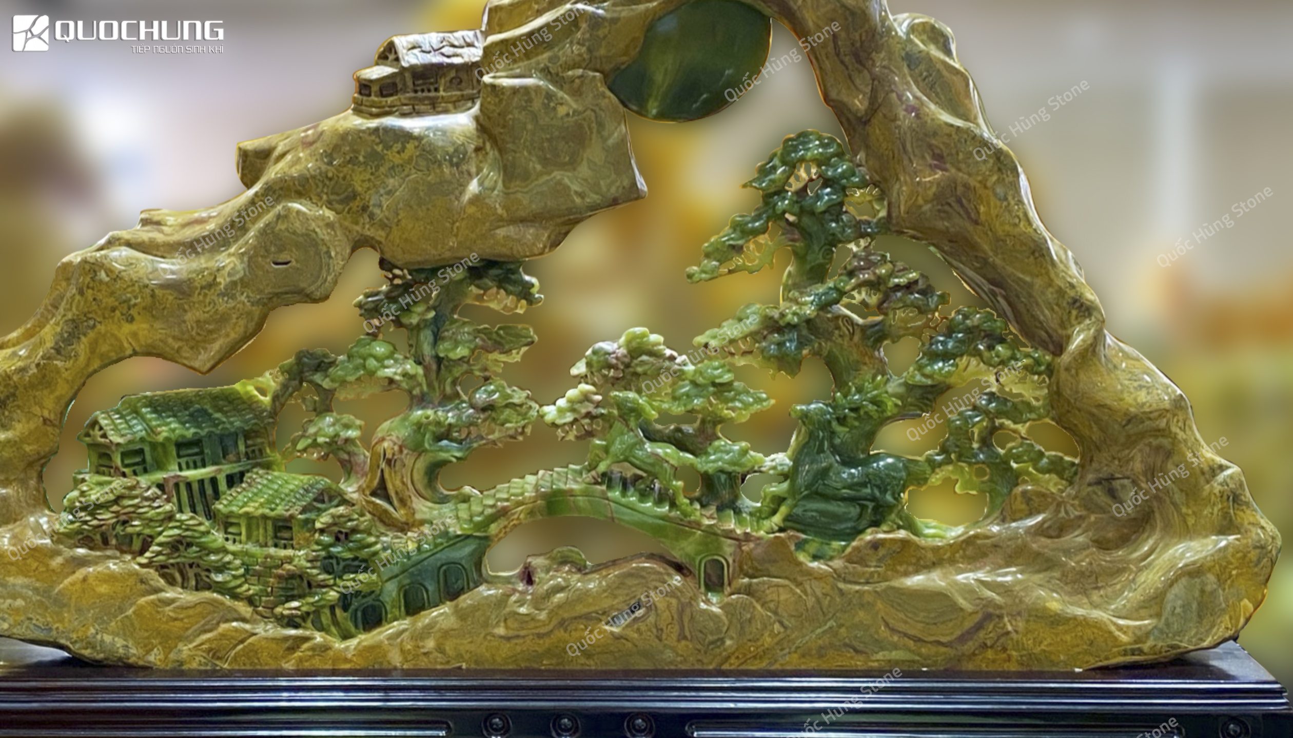 Nếu bạn đang tìm kiếm một địa chỉ uy tín để sở hữu Tác Phẩm Bồng Lai Tiên Cảnh Ngọc Onyx, hãy đến với Quốc Hùng Stone. Với nhiều năm kinh nghiệm trong lĩnh vực đá tự nhiên, chúng tôi cam kết mang đến cho bạn những sản phẩm chất lượng nhất, được chế tác tinh xảo từ những nguyên liệu tốt nhất.