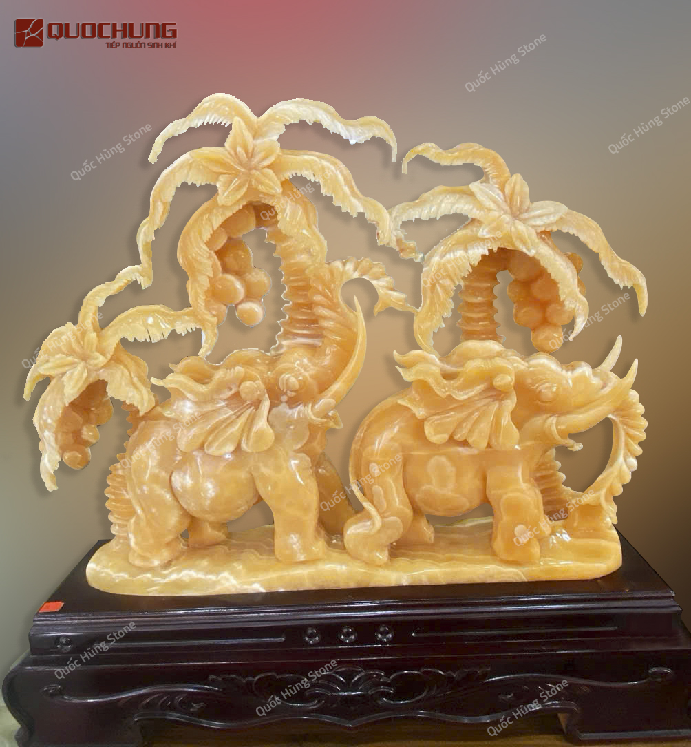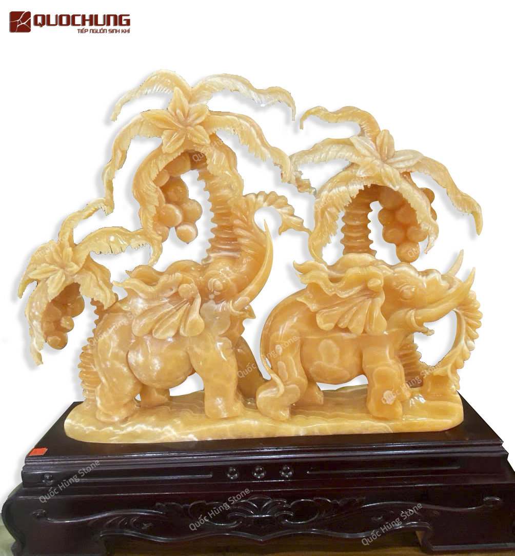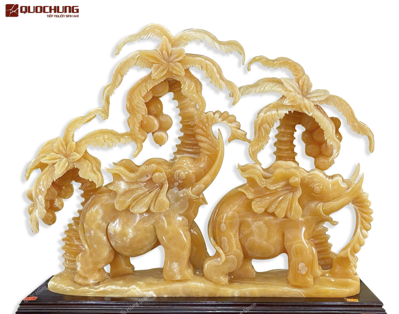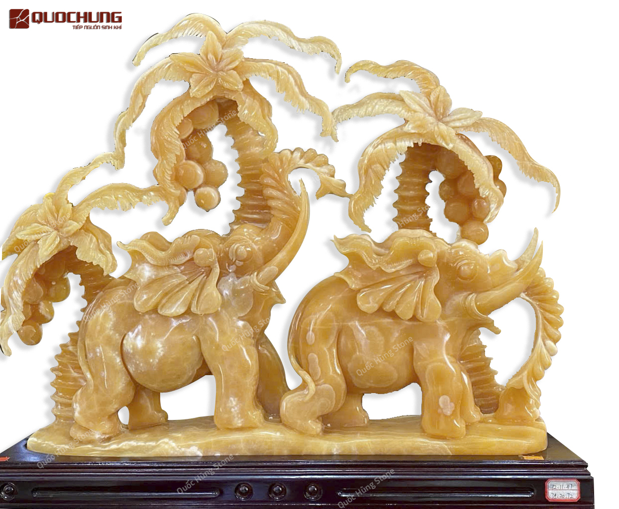 Tác phẩm Cặp Voi Ngọc Hoàng Long không chỉ đẹp về ý nghĩa mà còn là một kiệt tác nghệ thuật. Mỗi con voi được chế tác tỉ mỉ, với từng chi tiết tinh tế thể hiện sự mạnh mẽ và uy nghi của loài voi. Màu vàng tươi rực rỡ của ngọc Hoàng Long tạo nên vẻ đẹp cuốn hút và mang tính thẩm mỹ cao, phù hợp với nhiều không gian khác nhau, từ phòng khách, phòng làm việc đến không gian ngoài trời.