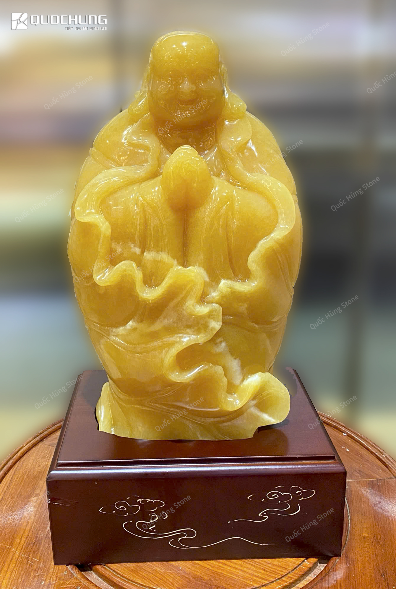 Ngọc Hoàng Long là loại đá quý tự nhiên có màu vàng ấm, tượng trưng cho phú quý, thịnh vượng và năng lượng tích cực. Tượng Di Lặc khi được chế tác từ loại ngọc này không chỉ mang giá trị thẩm mỹ cao mà còn có tác dụng phong thủy, thu hút vận may và xua tan năng lượng tiêu cực. Đây là lý do mà Tác Phẩm Tượng Di Lặc Chúc Phúc Ngọc Hoàng Long được nhiều người yêu thích và trưng bày trong nhà, nơi làm việc hoặc không gian kinh doanh để mang lại may mắn và an lành