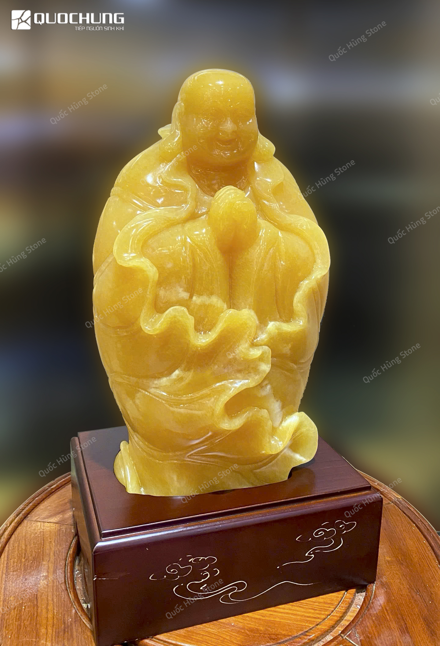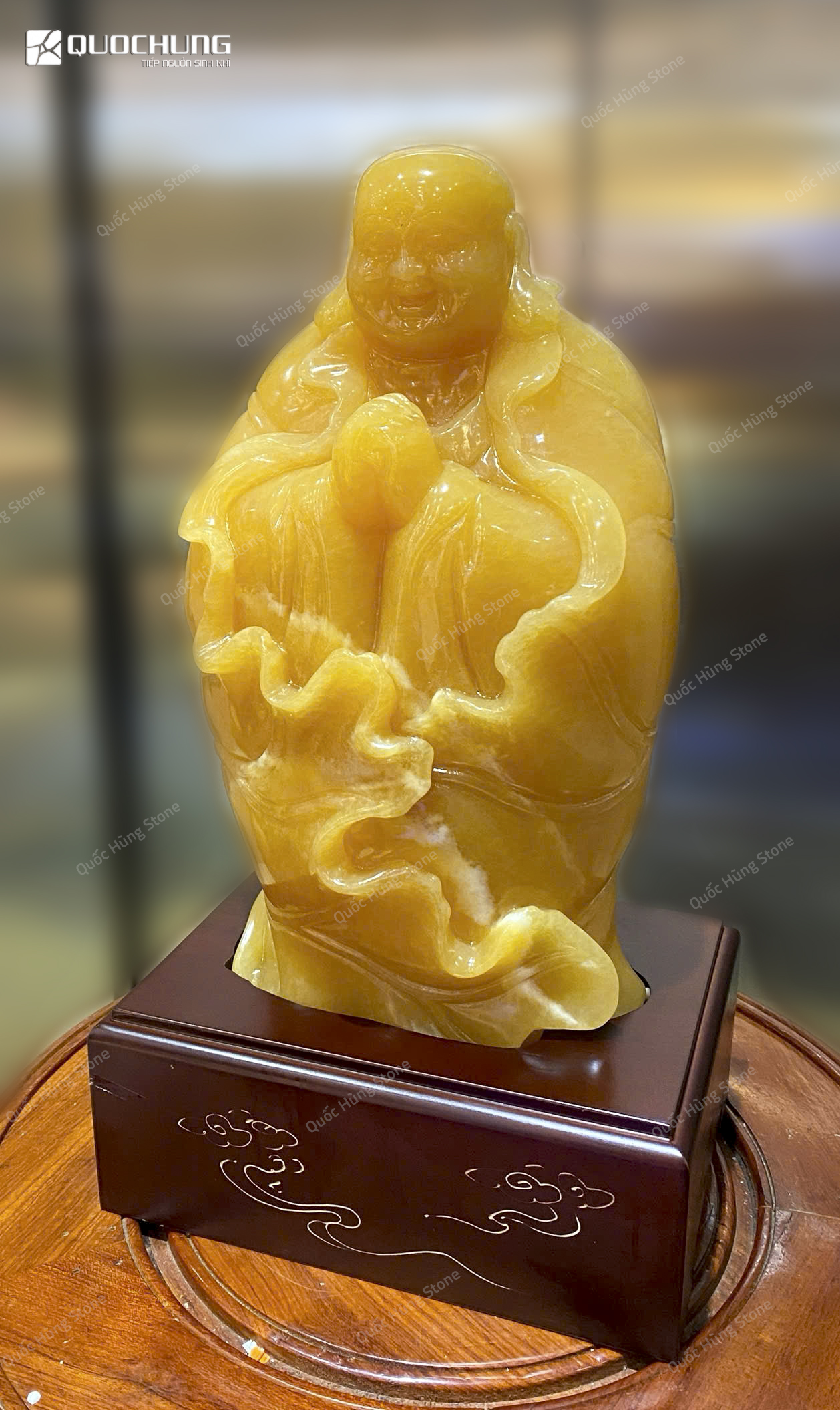 Tượng Di Lặc luôn là biểu tượng của hạnh phúc, thịnh vượng và an vui trong phong thủy. Đặc biệt, tác phẩm Di Lặc Chúc Phúc Ngọc Hoàng Long không chỉ nổi bật nhờ vẻ đẹp tự nhiên của loại đá quý này mà còn mang đến nhiều ý nghĩa tâm linh sâu sắc. Ngọc Hoàng Long, với màu vàng ấm áp, đại diện cho tài lộc, phú quý, khi được chạm khắc thành hình tượng Di Lặc, tượng trưng cho sự bảo hộ và những điều may mắn trong cuộc sống.