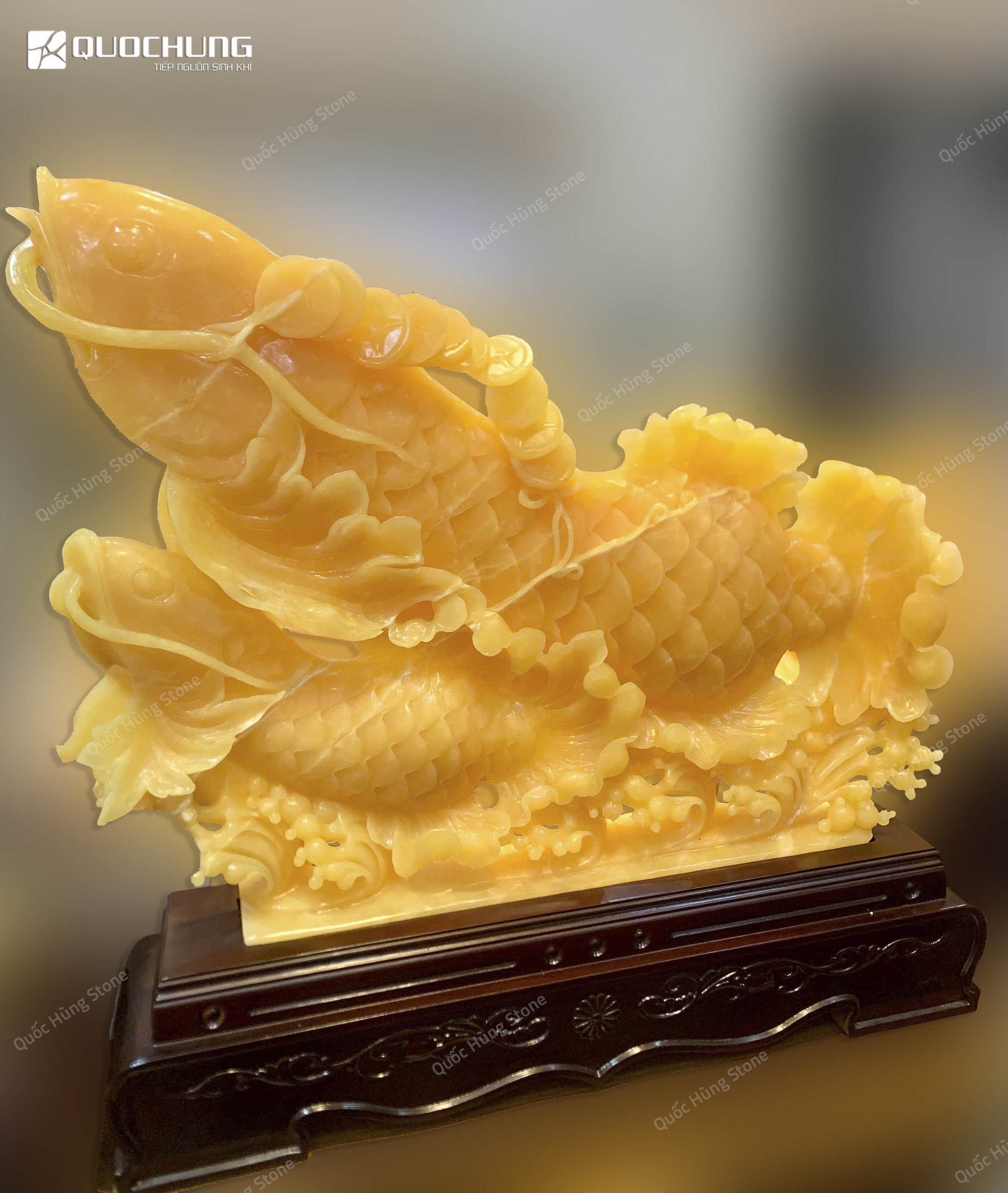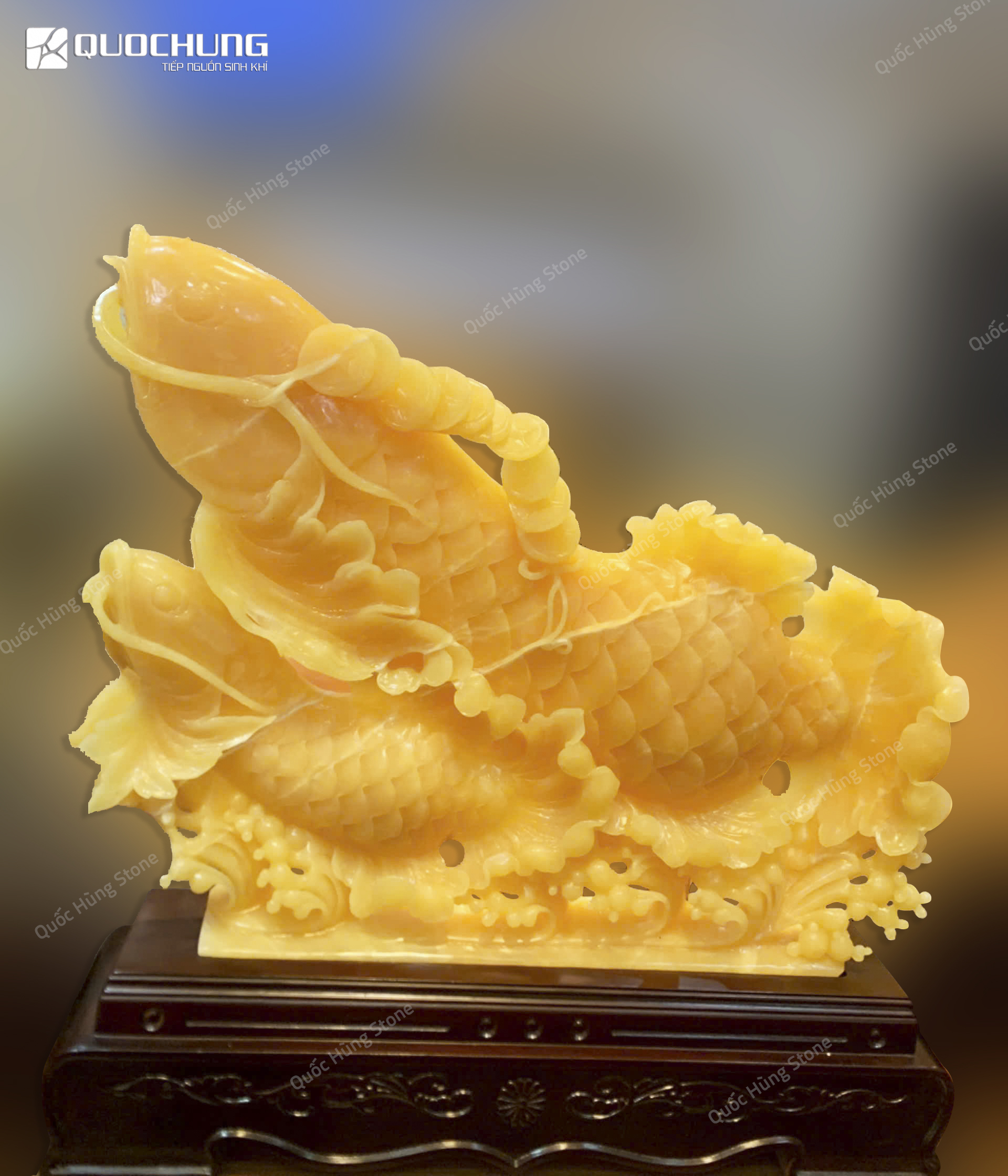 Tại Quốc Hùng Stone, chúng tôi cung cấp các sản phẩm Song Ngư Ngọc Hoàng Long chất lượng cao, được chế tác từ đá ngọc Hoàng Long tự nhiên. Với đội ngũ nghệ nhân giàu kinh nghiệm và quy trình sản xuất nghiêm ngặt, chúng tôi cam kết mang đến những tác phẩm phong thủy tuyệt đẹp và giá trị cho khách hàng. Hãy đến với chúng tôi để lựa chọn cho mình những tác phẩm phong thủy độc đáo và đầy ý nghĩa.