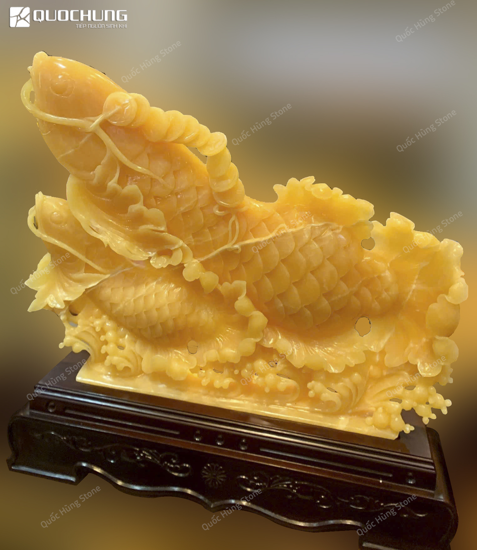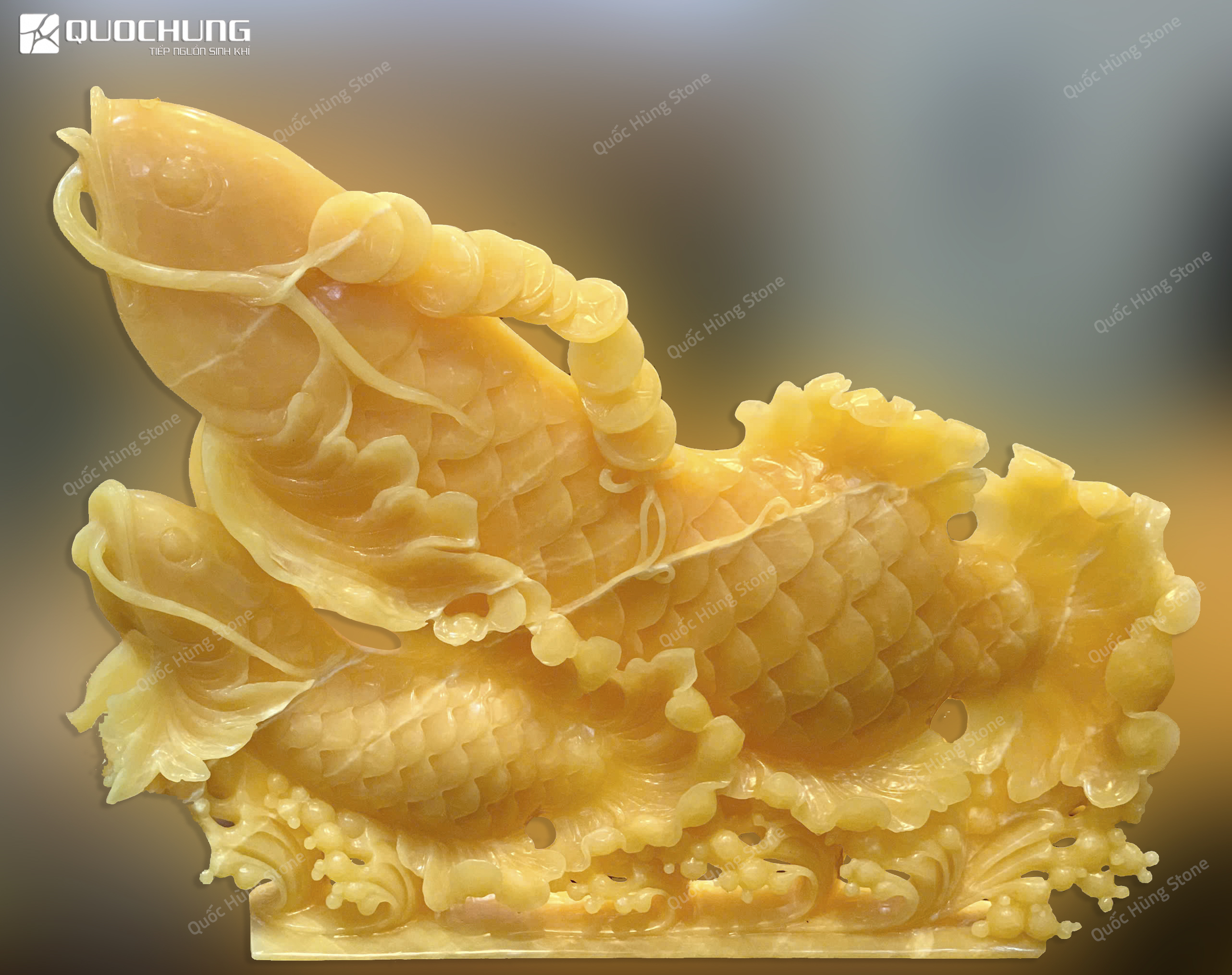 - Phát Triển và Thành Công Trong Sự Nghiệp: Ngọc Hoàng Long thuộc hành Thổ, mang đến năng lượng ổn định và phát triển. Kết hợp với biểu tượng cá, tác phẩm này giúp kích thích sự thăng tiến trong sự nghiệp, tạo điều kiện cho những cơ hội mới, giúp công việc ngày càng thịnh vượng.