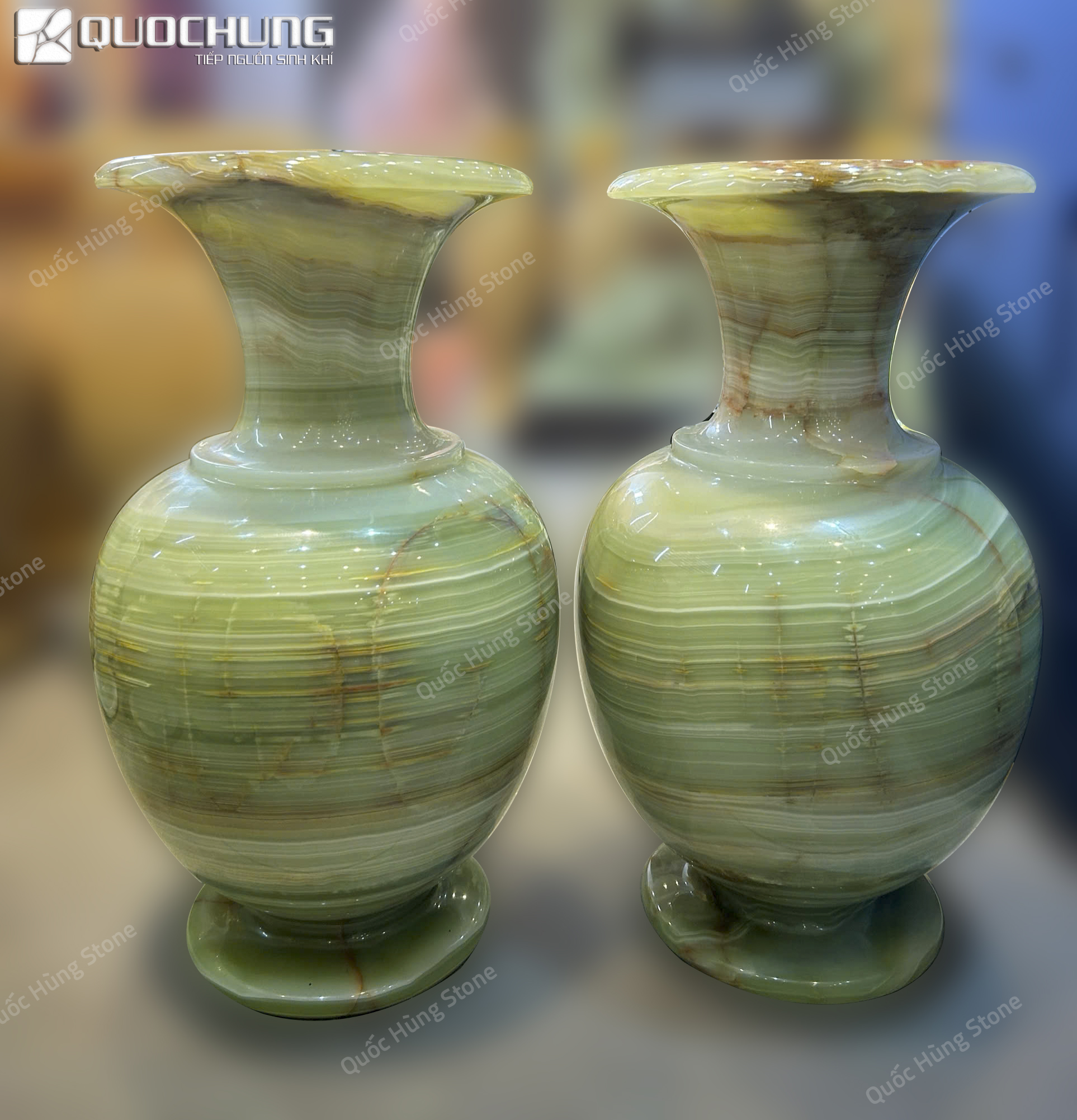 Cặp Lục Bình Ngọc Onyx Vân Thổ Cẩm