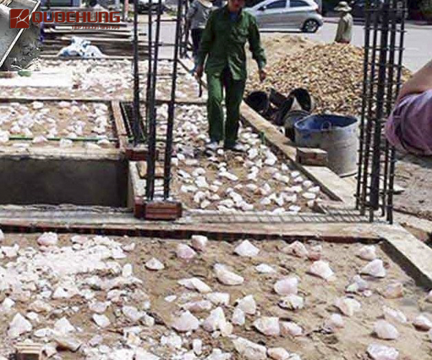 Trước khi đổ bê tông nền, nên rải đều một lớp đá thạch anh vụn dày khoảng 3–5 cm.